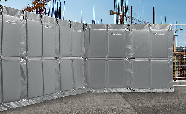 Das großflächige System HPZ I mit einer Aufbauhöhen von 3,5 Metern, 4,4 Metern bis zu 7 Metern. Schallschutz an der Lärmquelle des rollenden Rades und zur Integration in die Feste Absperrung UPZ FA III EN SBB bietet das handliche System HPZ II. Die Schallschutz-Matten vom System HPZ III werden an die Bauabschrankung montiert und bieten zusätzlich einen Sichtschutz. Die neue Matte HPZ III-A bietet einen Absorbitionsgrad von 0,85. Die Matten sind einzeln oder als 10er Set erhältlich, modular transportier- und lagerbar zum Beispiel in unseren speziellen Boxen.